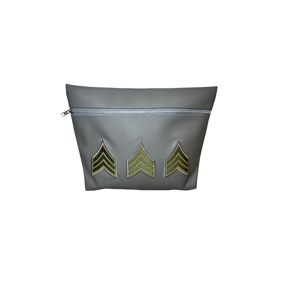 This 100% Handmade multipurpose bag is made of durable vinyl, leather, and recycled nylon. It features a large zipper pocket and a colorful embroidered design on the front.