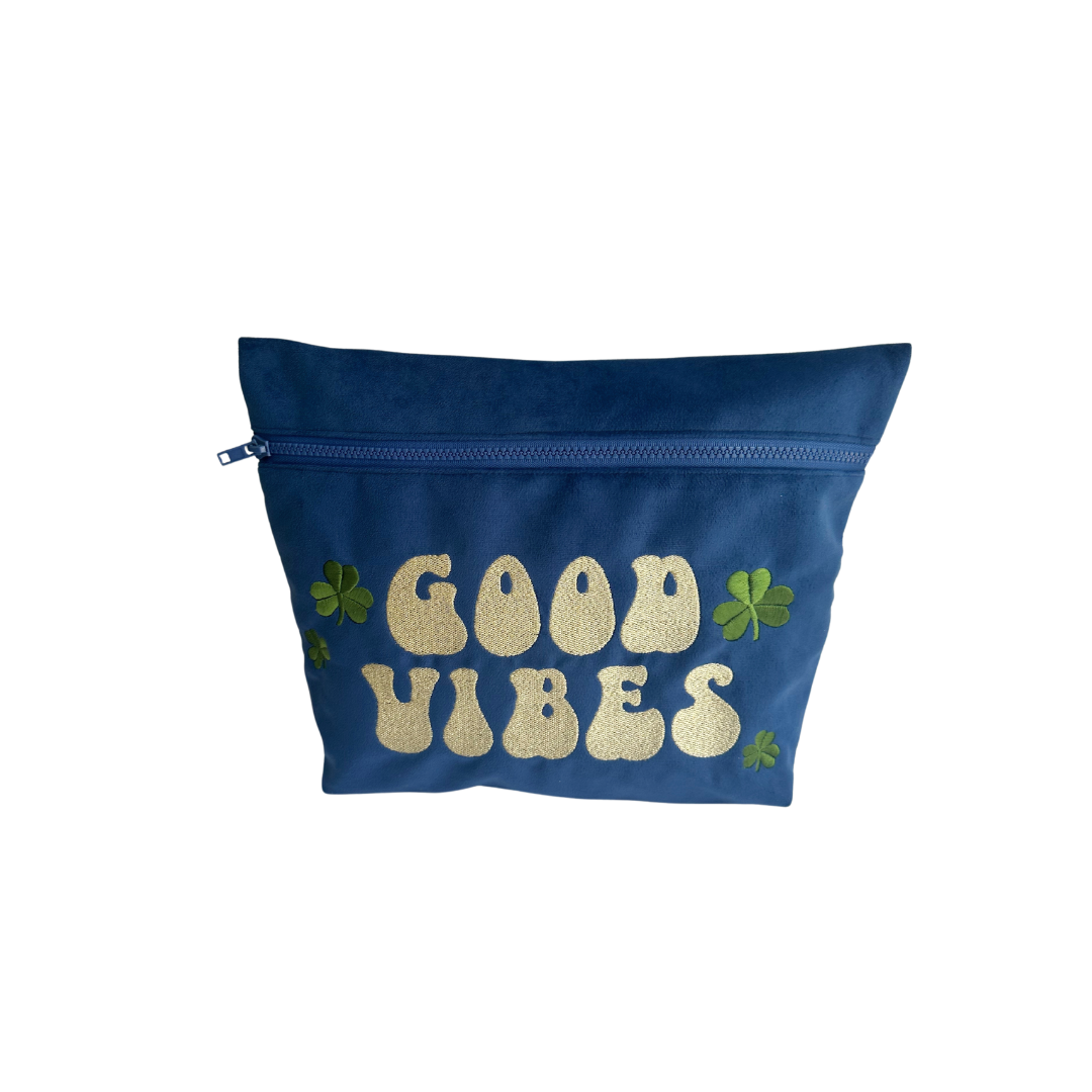 Navy Blue Velvet Good Vibes Pouch